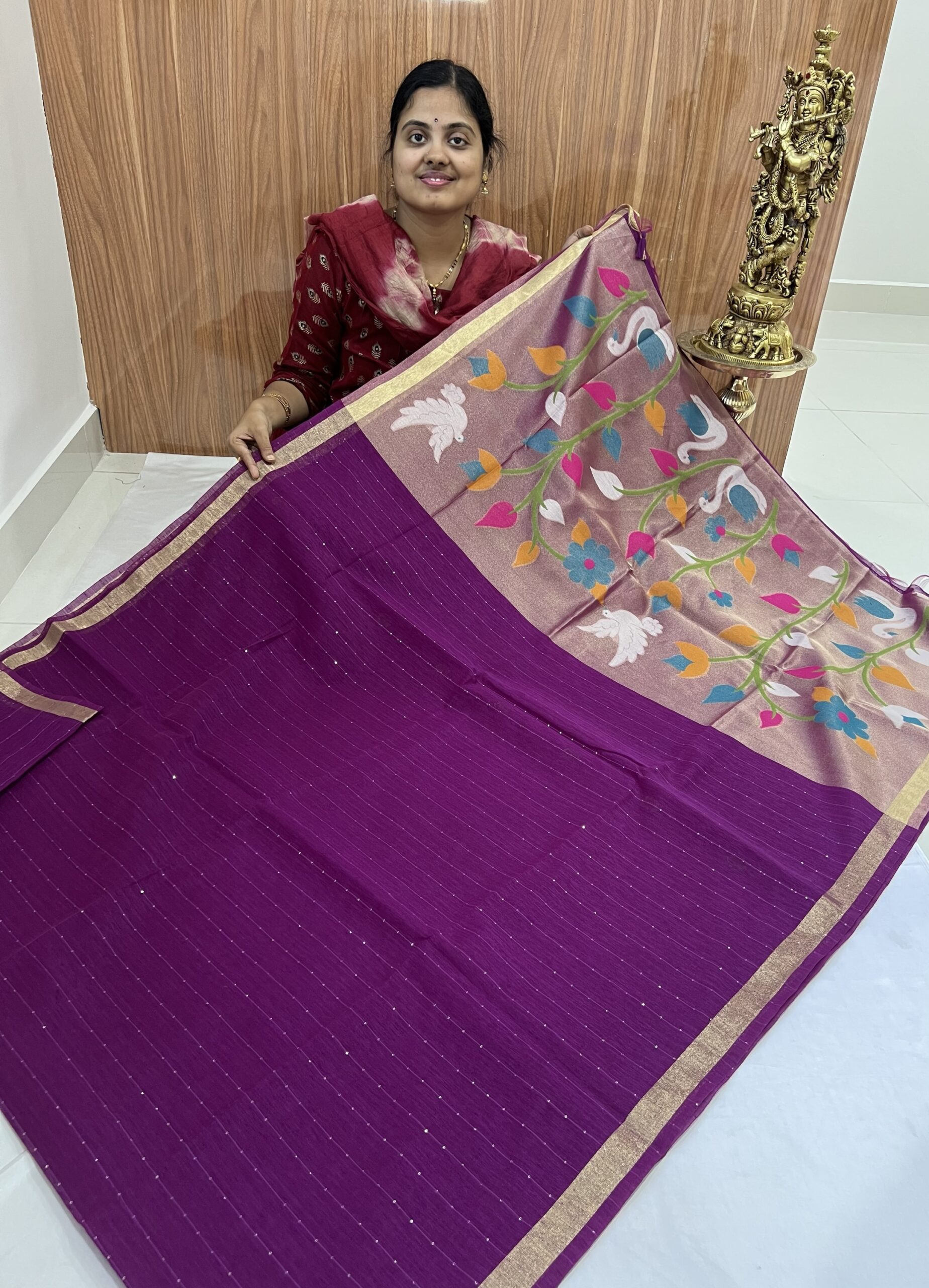 Stunning Lenin jamdani sequence work saree