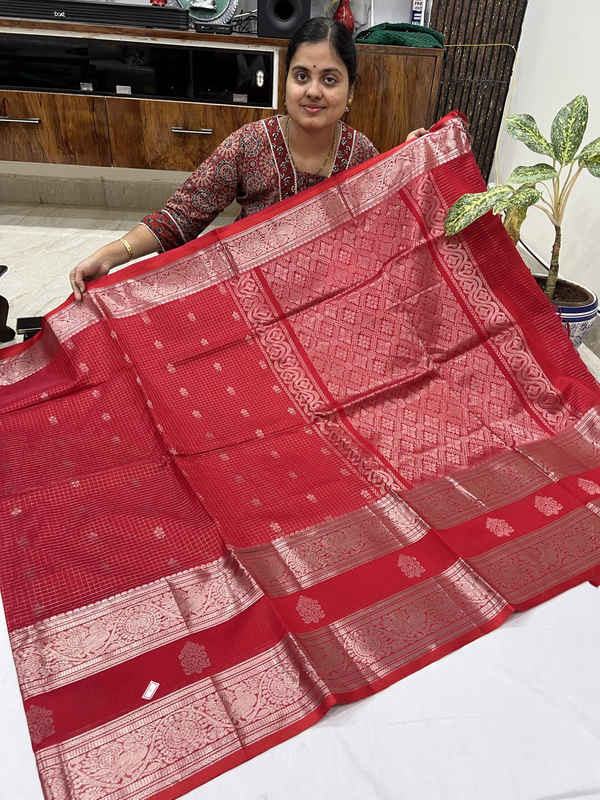 Pure handloom Mangalagiri pattu saree with vintage silver jari checks and gap Gadwal borders