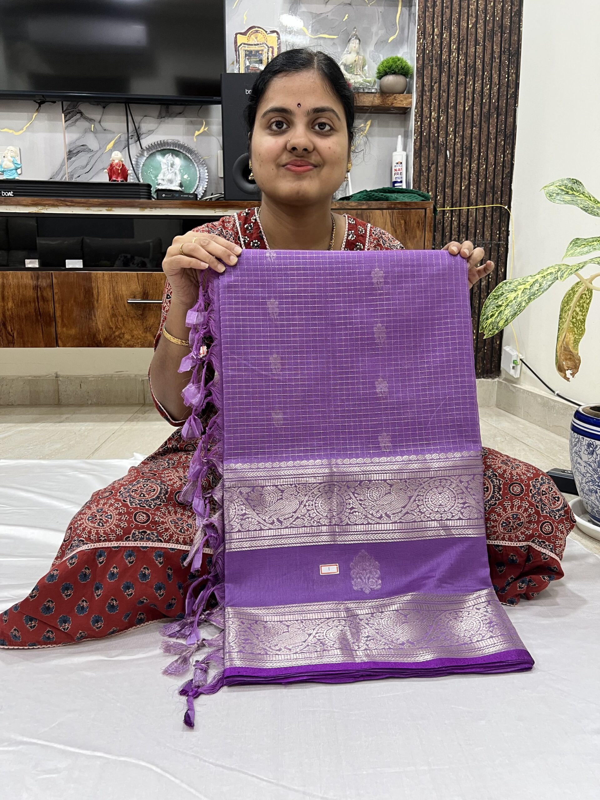 Pure handloom Mangalagiri pattu saree with vintage silver jari checks and gap Gadwal borders